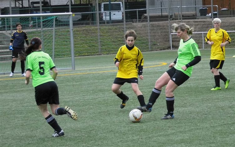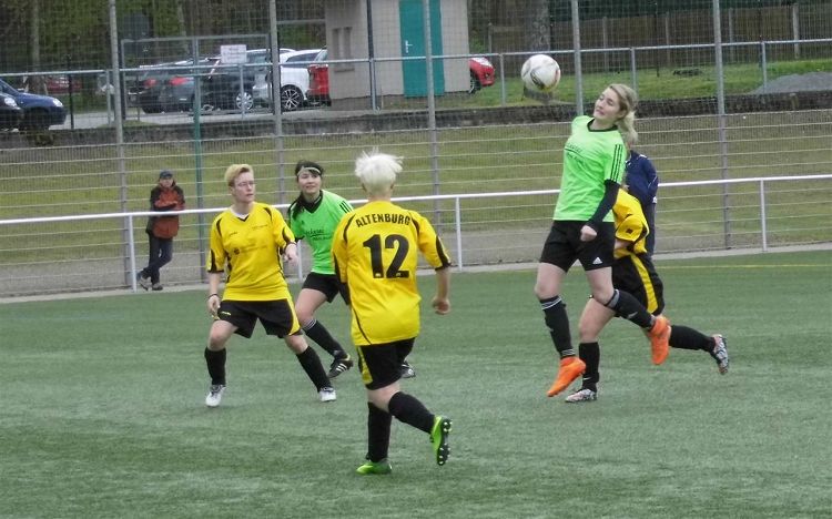 Auch in der zweiten Halbzeit entwickelte sich ein ähnliches Spiel, wie in den ersten vierzig Minuten. Der Kampf auf der Enge des Raumes, zwischen den beiden Strafräumen, dominierte. Ab und zu, wenn der Ball mal über mehrere Stationen direkt gespielt wurde, entstand Torgefahr. Hier hatten die Gäste aus Magdala die etwas besseren Chancen, doch bei Karolin Heimer im Motor-Tor war Endstation. Einmal musste aber sich auch Katharina Stock auf der gegenüberliegenden Seite mächtig strecken um den Siegtreffer für die Altenburger zu verhindern. Beide Teams agierten jedoch sonst taktisch sehr aufmerksam, so dass es am Ende bei diesem respektablem 1:1-Unentschieden blieb, wofür es für die Altenburger auch von Gästecoach Rainer Buschmann reichlich Komplimente gab. Nach dem Spiel einigte man sich noch auf ein Neunmeterschießen. Da der TSV Magdala am 1. Mai gegen den FC Einheit Bad Berka in Bad Blankenburg im Kreispokalfinale von Mittelthüringen steht, wollte Trainer Buschmann dies noch mal praxisnah trainieren um eventuell etwas Sicherheit für diese Eventualität zu bekommen. Nachdem alle Spielerinnen einmal geschossen hatten, endete auch das Strafstoßschießen unentschieden, 5:5.