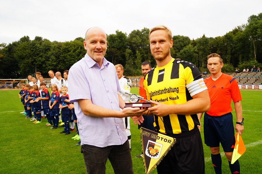 Für Motor war es etwas Besonderes, gegen eine Profimannschaft zu spielen. Darunter befanden sich unter anderem Spieler wie Manfred Starke, dreimaliger Nationalspieler von Namibia oder Kevin Pannewitz, der einst als Lebensversicherung von Hansa Rostock galt und nach einem turbulenten Leben mit seiner Einwechslung in der 68. Minute sein Comeback im Profifußball feierte. Dennoch gelang es Motor ab und an, diese Profimannschaft zu überlisten. So hatte Altenburg nach einem Pass in den Lauf von Rico Heuschkel zu Fabian Baur in der 36. Minute plötzlich die Riesenchance zur Führung. Dieser fand jedoch in Torhüter Stefan Schmidt seinen Meister.