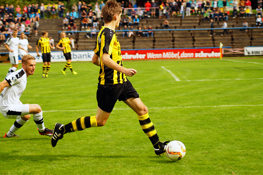 Motor blieb zumindest konzentriert, auch wenn die Kräfte langsam nachließen. Die Gastgeber kamen dennoch in der 77. Minute zu einer Chance, als David Syhre den Ball am langen Pfosten vorbeischoss. Da stand es jedoch schon seit einigen Minuten 0:3, nachdem erst zwei Spieler vor der Linie scheiterten und Maximilian Wolfram die Kugel dann über die Linie stocherte.