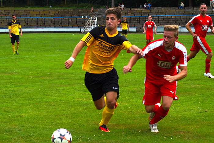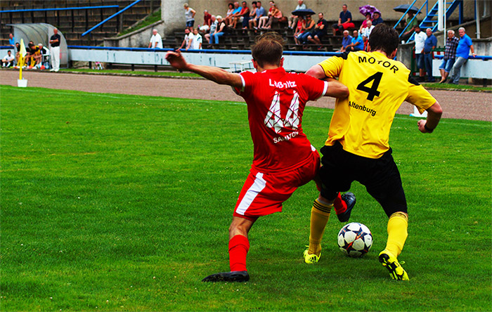 Im Vergleich zur Vorwoche konnte sich die Mannschaft noch einmal steigern und bewies sich auch in der Offensive als präsenter. Doch auch die Gäste machten ordentlich Druck, weshalb es nicht leicht werden sollte. Nach einer Viertelstunde folgte die erste gute Chance. Nach einem Freistoß der Gäste kam der Ball über Links schnell in die Spitze, der Gästekeeper war jedoch sofort zur Stelle und wehrte den Ball ab. Nur eine Minute später zappelte er jedoch im Netz. Den Ball des Torhüters köpfte Kai Müller zurück in die Spitze, um schließlich Patrick Reichel zu bedienen, der mühelos einschob. Mit einem Schuss aus spitzem Winkel kam Lößnitz jedoch sofort wieder zum Ausgleich. Schon in der 21. Minute folgte die erneute Führung der Altenburger. Nach einem Doppelpass mit Thomas Rolle hob Rico Heuschkel den Ball über den Torhüter zum 2:1 ins Tor. Zwei Minuten später kam es fast zum 3:1. Anthony Ast war plötzlich frei durch, sein Schuss aufs leere Tor konnte jedoch im letzten Moment noch abgefangen werden. In der Schlussphase der ersten Hälfte konnte Lößnitz mit einigen Treffern an die Latte noch ordentlich gefährlich werden, Motor hatte das Glück jedoch auf seiner Seite.