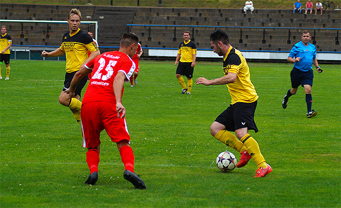 In Hälfte Zwei kam auch der sechste Neuzugang, Alexander Korent, zu seinem ersten Testspieleinsatz und machte direkt durch einige gute Angriffe und Torchancen auf sich aufmerksam. Ansonsten blieb das Spiel auf dem guten Niveau der ersten Hälfte. In der 77. Minute war der Torhüter der Gäste auf dem nassen Untergrund schon geschlagen, den Schuss von Marcel Schöffmann konnte er daher nur noch leicht ablenken, sodass Rico Heuschkel zum 3:1 abstauben konnte. Es dauerte jedoch wieder nur eine Minute bis zum Gegentreffer. Einen starken Schuss wehrte Norman Teichmann im Altenburger Tor zunächst ab, der darauffolgende Kopfball saß jedoch. Als die Schlussphase erreicht war, schaffte Lößnitz sogar noch den Ausgleichstreffer, am Ende ist das exakte Ergebnis jedoch zweitrangig, der SV Motor Altenburg zeigte auch im dritten Testspiel eine gute Leistung und zeigt dadurch zwei Wochen vor dem Saisonauftakt in Teistungen deutliche Fortschritte.