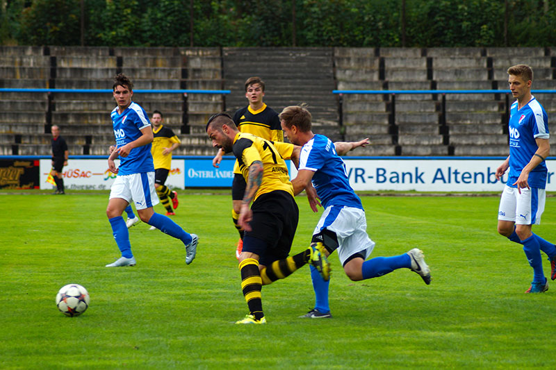 Nach einer intensiven Trainingswoche unter subtropischen Klimaverhältnissen sollte es an einem Wochenende mit gleich zwei Testspielen noch einmal richtig anstrengend werden. Wie erwartet zeigte sich Merseburg als harter Gegner und nahm von Beginn an die dominierende Rolle ein. Schon nach drei Minuten gingen die Gäste in Führung. Nach einem cleveren Pass in die Spitze konnte Fabian Schößler frei einschieben. Merseburg blieb in der Folgezeit als heißer Kandidat für die Meisterschaft in Sachsen-Anhalt erwartungsgemäß präsenter, Motor hielt jedoch sehr gut mit und konnte auch einige Chancen kreieren. In der fünften Minute kombinierte sich Altenburg bis zur Grundlinie durch, ein Schuss in Richtung langer Pfosten wurde schließlich abgefangen. Merseburg versuchte einige Male, die Altenburger Abwehr mit cleveren Schnittstellenpässen auszuhebeln. So schossen die Gäste in der 25. Minute nach einigen Abwehrversuchen nur knapp über den Querbalken. Doch auch dank einer guten Torhüterleistung auf beiden Seiten wurden einige Torchancen zunichte gemacht. So zeichnete sich Norman Teichmann in der 32. Minute bei zwei aufeinanderfolgenden Torschüssen aus, schließlich wurde der Ball zur Ecke geklärt. Die beste Chance zum Ausgleich hatte Rico Heuschkel in der 45. Minute nach einem Heber, am Ende scheiterte er jedoch an Keeper Lukas Wurster.