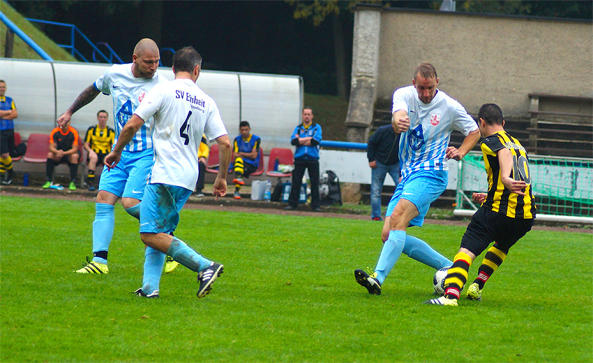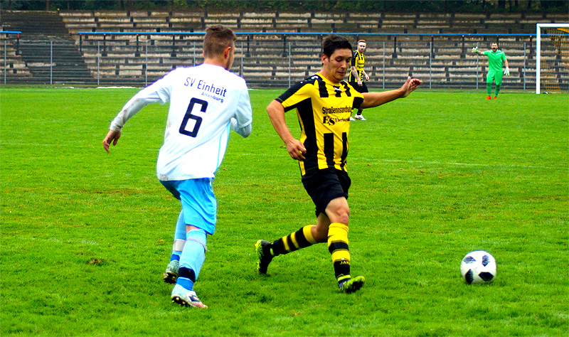 Die zweite Hälfte verlief ohne größere Höhepunkte. Durch die Innenverteidigung um Marcel Schöffmann und Fabian Baur mit reichlich höherklassiger Erfahrung war einfach kein Durchkommen. So konnten auch kurze Durchhänger schnell wieder ausgeglichen werden. Der kampfbetonten Spielweise der Einheit-Mannschaft versuchte man viel entgegenzusetzen und überforderte die Abwehr mit Sprints aus dem Mittelfeld bis in die Spitze. So kamen Steve Senff, Maik Gordziel und Mahmoud Alhussein noch in aussichtsreiche Positionen, wobei der Torhüter der Gäste mehrfach Schlimmeres verhinderte. Abschlüsse von Einheit aus der zweiten Reihe gingen in der Regel weit über das Tor, sodass am Ende ein verdienter und souveräner 2:0 Sieg zu Buche stand.