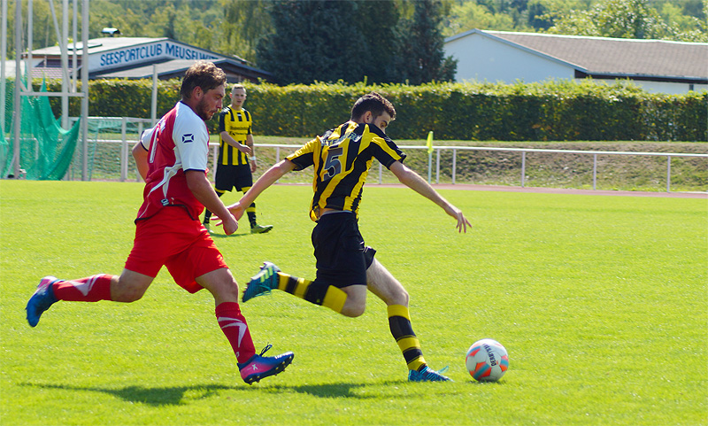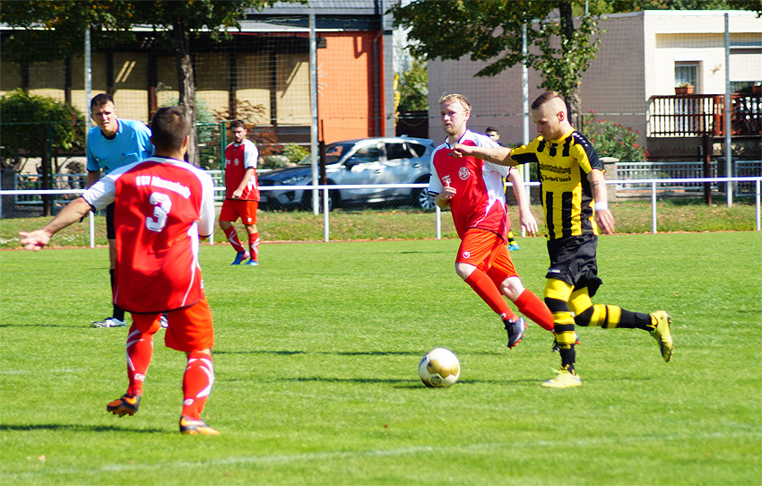 Motor besaß am Anfang des Spiels lange den Ball und ließ ihn erst gemächlich durch die eigenen Reihen laufen, bevor man sich nach und nach weiter nach vorne traute. Dafür gehörte jedoch überraschenderweise dem FSV Meuselwitz II die erste Chance. Der Ball wurde dabei erst scharf in die Spitze gespielt, wobei Norman Schote blitzschnell zur Stelle war, den ersten Versuch an der Strafraumkante abblockte und der Meuselwitzer den Ball daraufhin nicht auf das leere Tor bringen konnte (12.). Glück im Unglück für die Altenburger, die durch diese Aktion noch einmal richtig wachgerüttelt wurden. Der erste Treffer gehörte somit doch dem SV Motor Altenburg, nachdem ihn Steve Senff nach dem ersten Abtasten flach im linken Eck unterbrachte (18.).