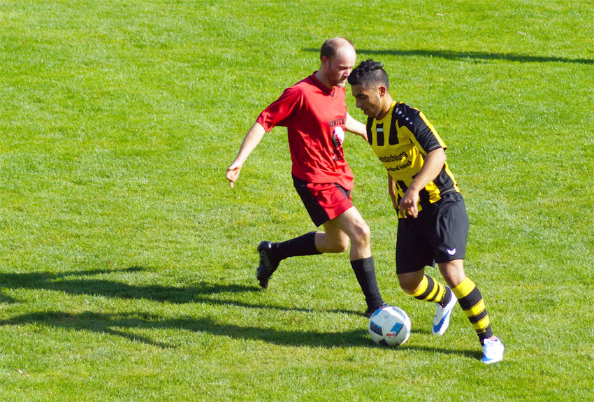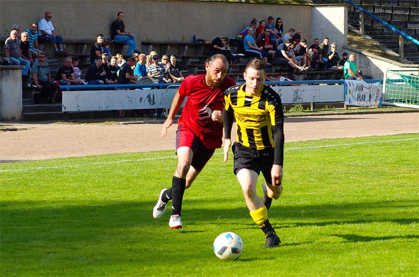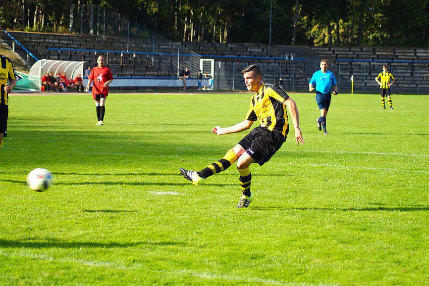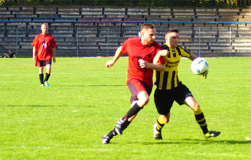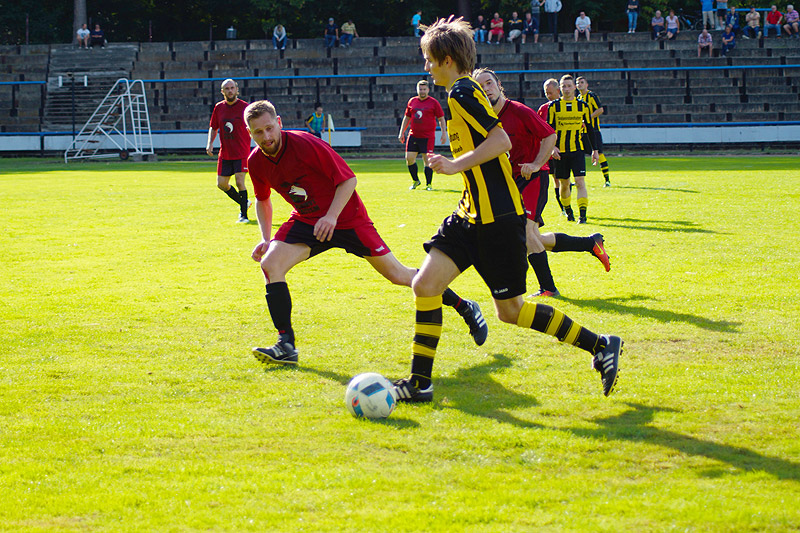 Die Favoritenrolle lag so nach den letzten Ergebnissen auf der Gastgeberseite. Motor übernahm daher auch von Beginn an die Kontrolle über das Spiel. So dauerte es auch keine zehn Minuten, bis der erste Tor-Schrei aus den Lautsprechern ertönte, nachdem Philipp Prechtl aus Nahdistanz den Ball flach am Gästekeeper vorbeilegte (8.). Aus läuferischer Sicht war der SV Motor Altenburg die bessere Mannschaft und konnte auch aus den meisten Zweikämpfen siegreich hervorgehen. Bei Einzelaktionen von Steve Senff oder Marcel Schöffmann fehlten der RSA-Zentrale die Ideen, während man auf den Flügeln körperliche Präsenz zeigte und so Motor dort weniger Räume offen ließ. Entlastungsangriffe versuchte man mit hohen Bällen in die Spitze einzuleiten. Diese fanden jedoch meist keinen Abnehmer, sodass Rene Linde im Altenburger Tor ohne echte Arbeit blieb.