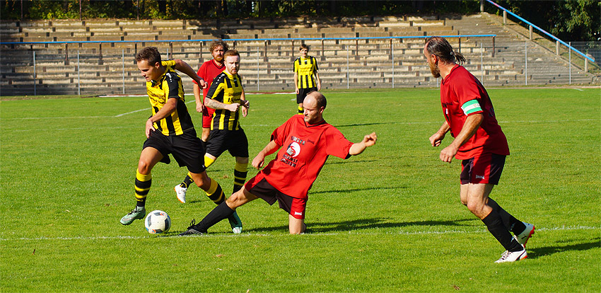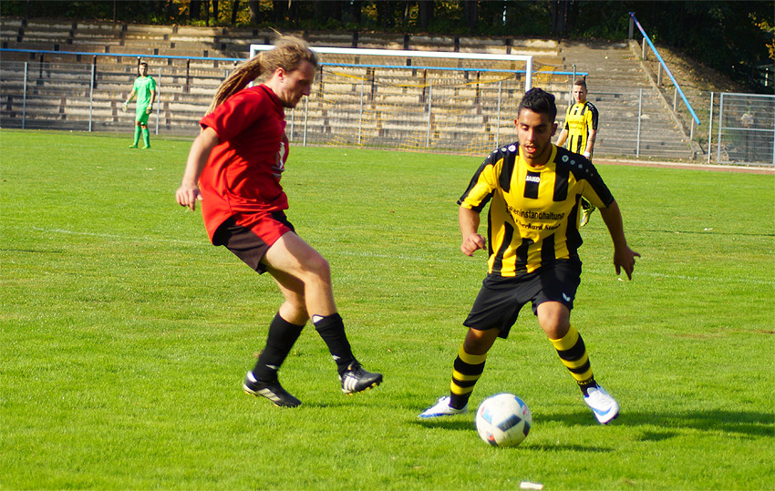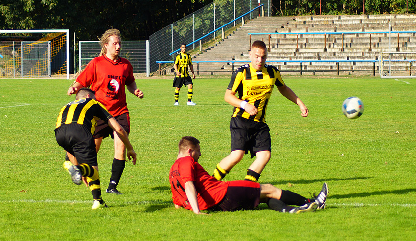 Dafür prüfte Fabian Baur Torhüter Stefan Engelhardt aus 18 Metern (12.), auch Bruno Gordziels Flachschuss nach Vorarbeit von Steve Senff wurde gehalten (19.). Bei einem Freistoß aus 25 Metern, der stecken blieb, bevor er gefährlich werden konnte, wurden die Gäste jedoch eiskalt ausgekontert, sodass Steve Senff frei auf das Tor zulaufen und auf 2:0 erhöhen konnte (26.). Danach verfehlte Bruno Gordziel per Schuss aus der Drehung aus 20 Metern noch das Tor (30.), bevor er per Freistoß aus ähnlicher Position den Torhüter überraschte und für das 3:0 sorgte (33.). Ohne Bedrängnis gelang Steve Senff noch vor der Pause die endgültige Vorentscheidung zum 4:0 (39.).