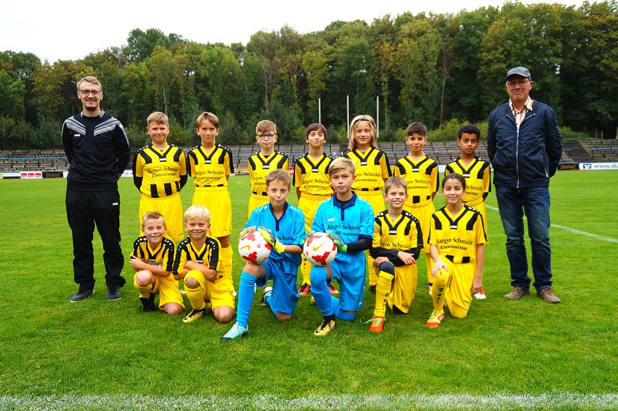 geschrieben von: Frank LudewigIn neuer Spielkleidung jagen nun unsere E-Junioren in der Kreisliga dem runden Leder nach. "Jürgen Schmidt Elektromeister" prangt nunmehr in großen Lettern auf den gelbschwarzen Trikots der Mannschaft um die Trainer René- und Mathias Seidel.