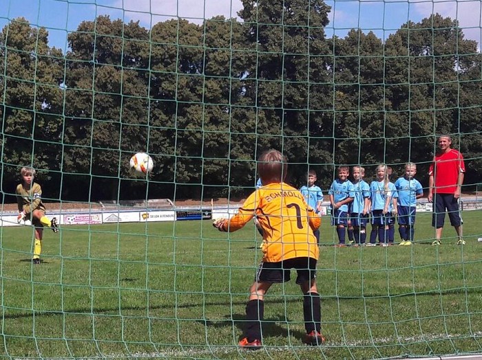 Am Ende gab es noch ein freundschaftliches Neunmeter-Schießen zum Abschluss, was allen Kindern viel Spaß machte. Besonders unser Torhüter war heute sehr gut drauf. Er hielt 4 Neunmeter der Schmöllner, saubere Leistung.