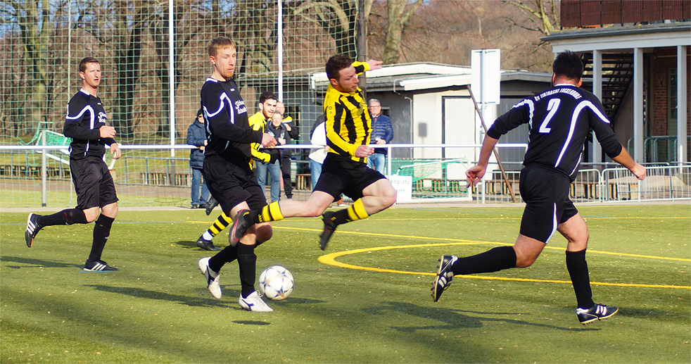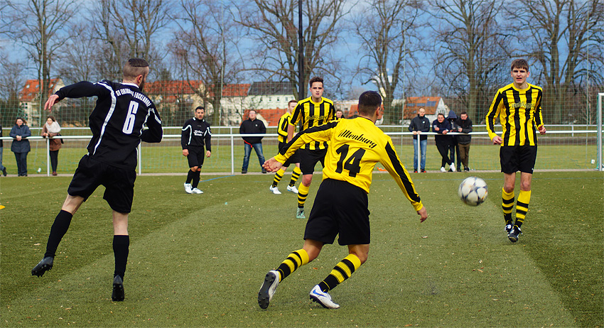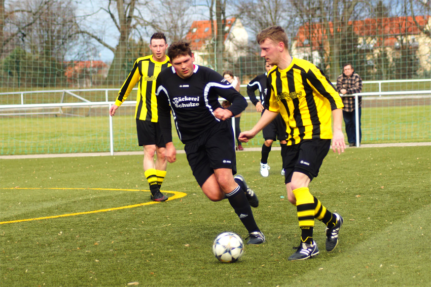 Nach einem kurzen Abtasten beider Mannschaften schockte der SV Motor Altenburg die höherklassigen Gäste zum ersten Mal. In Rückenlage zum Tor bekam Maik Gordziel den Ball zugespielt, zögerte kurz und ließ so die Verteidigung geschickt auflaufen. Sein Schuss aus der Drehung schlug danach für Torhüter Steven Neidnig unhaltbar im rechten Eck ein (5.). Doch auch mit den Fockendorfern, die in der Offensive gut verschoben, war zu rechnen. Dass der freistehende Sebastian Kleinoth nach einem Diagonalpass nicht den Ausgleich erzielte, war allein Norman Schotes Verdienst (15.).