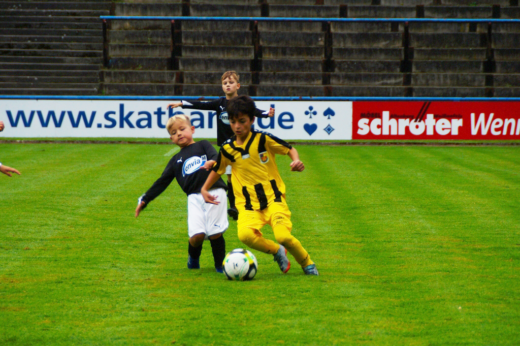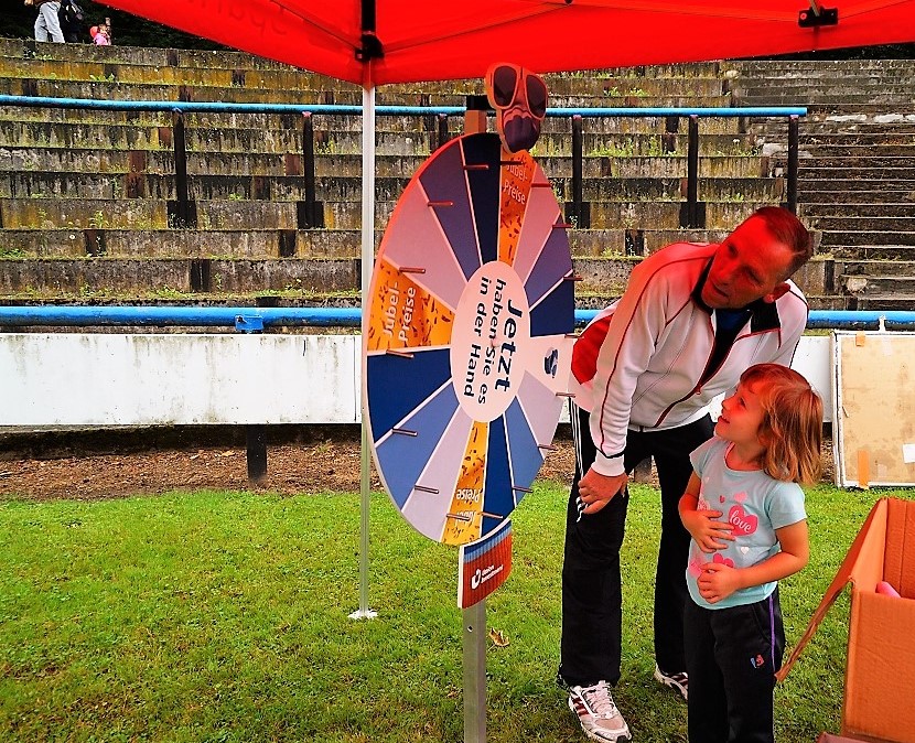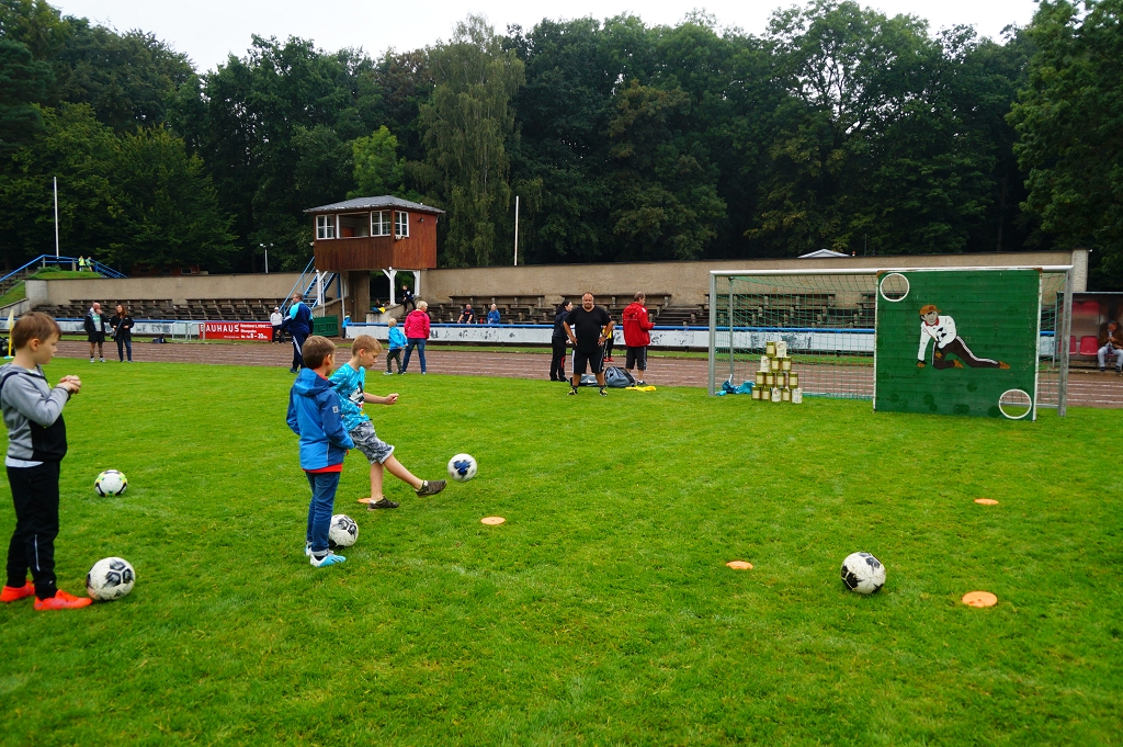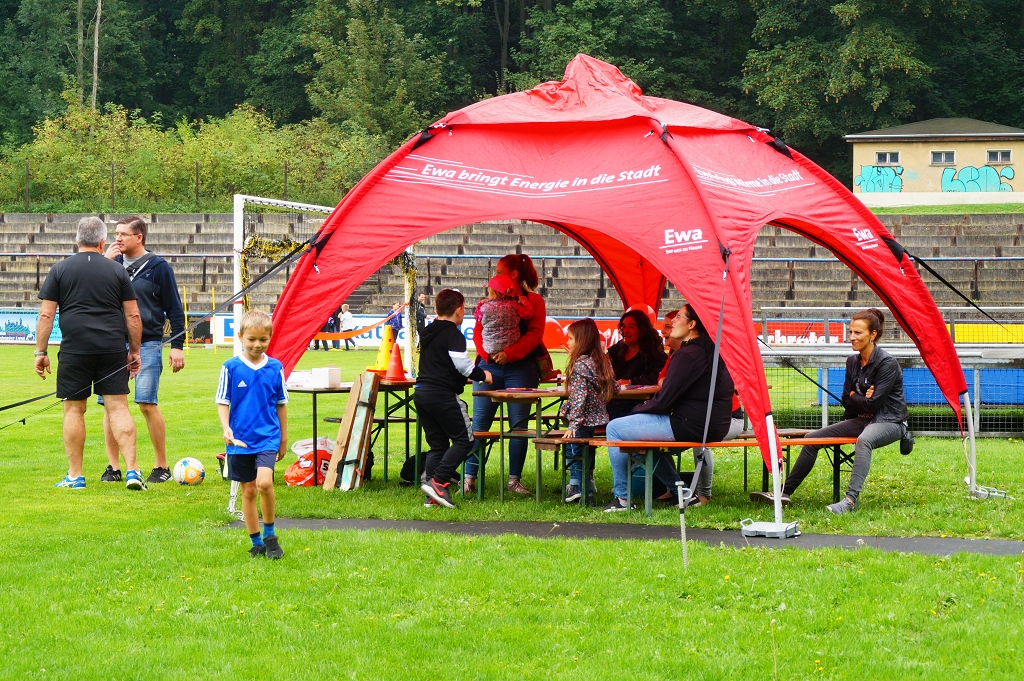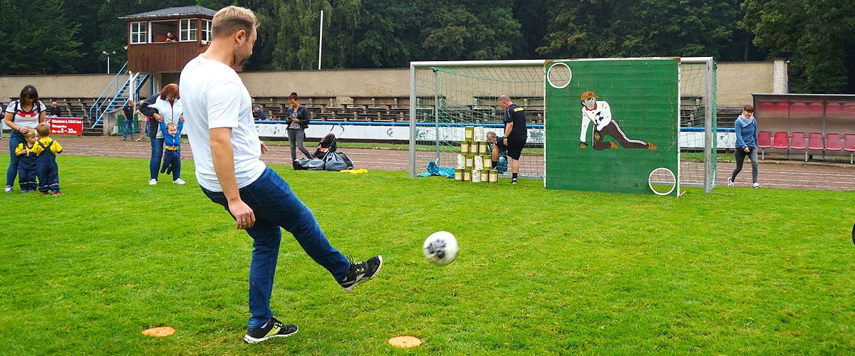 Trotz des stark einsetzenden Regens, der dem Veranstalter einige Sorgen bereitete, blieb das Fest gut besucht. An verschiedenen Mitmachstationen und auf abwechslungsreichen Parcour’s quer durch die Skatbank-Arena, konnten anschließend Groß und Klein ihre sportlichen Fähigkeiten unter Beweis stellen. Sehr beliebt waren das Büchsen-Zielschießen, die Torwand und der Speedmesser. Glücksrad, Hüpfburg und Bastelangebote rundeten das Angebot ab. Hierbei unterstützte die Kita Brummkreisel uns sehr. Vielen Dank.