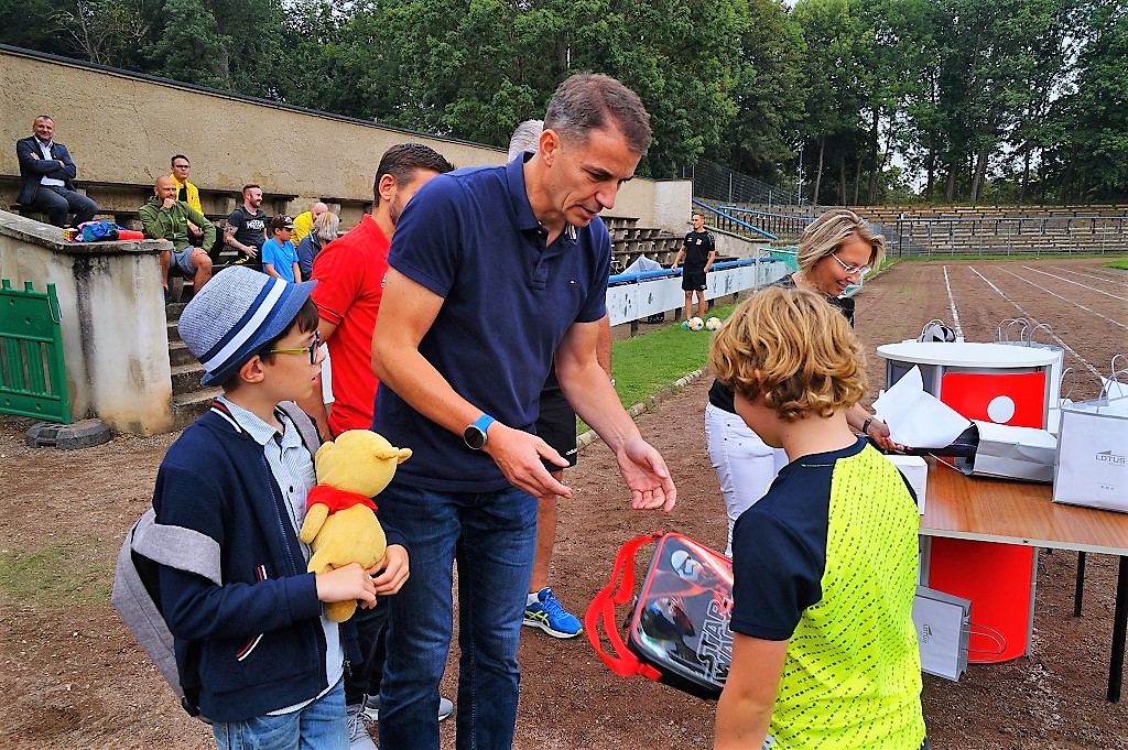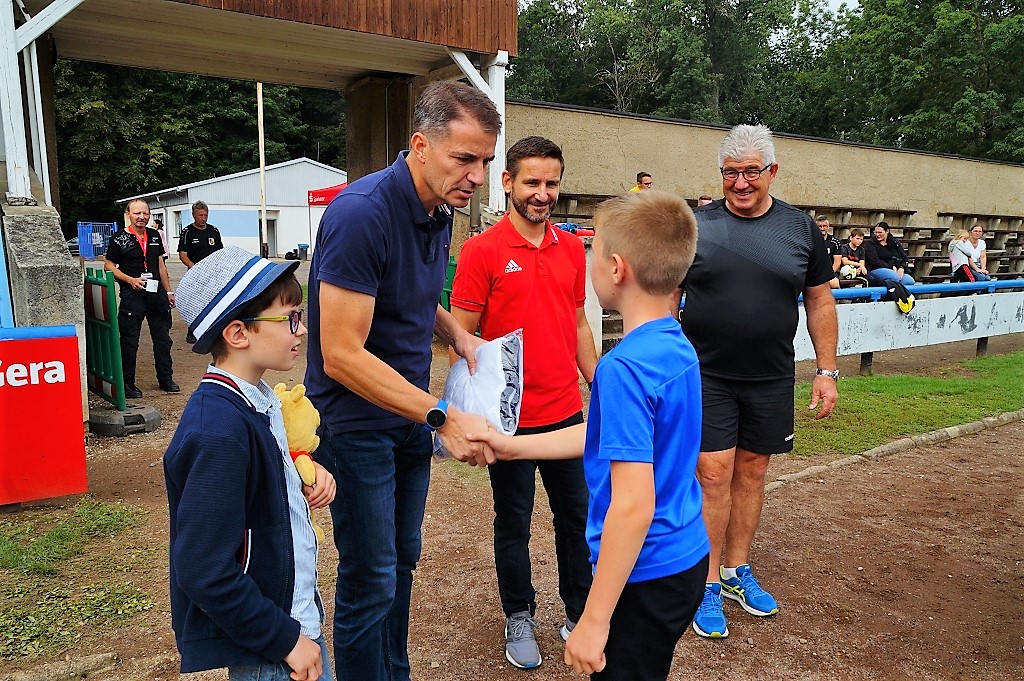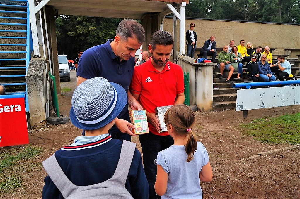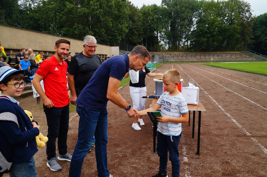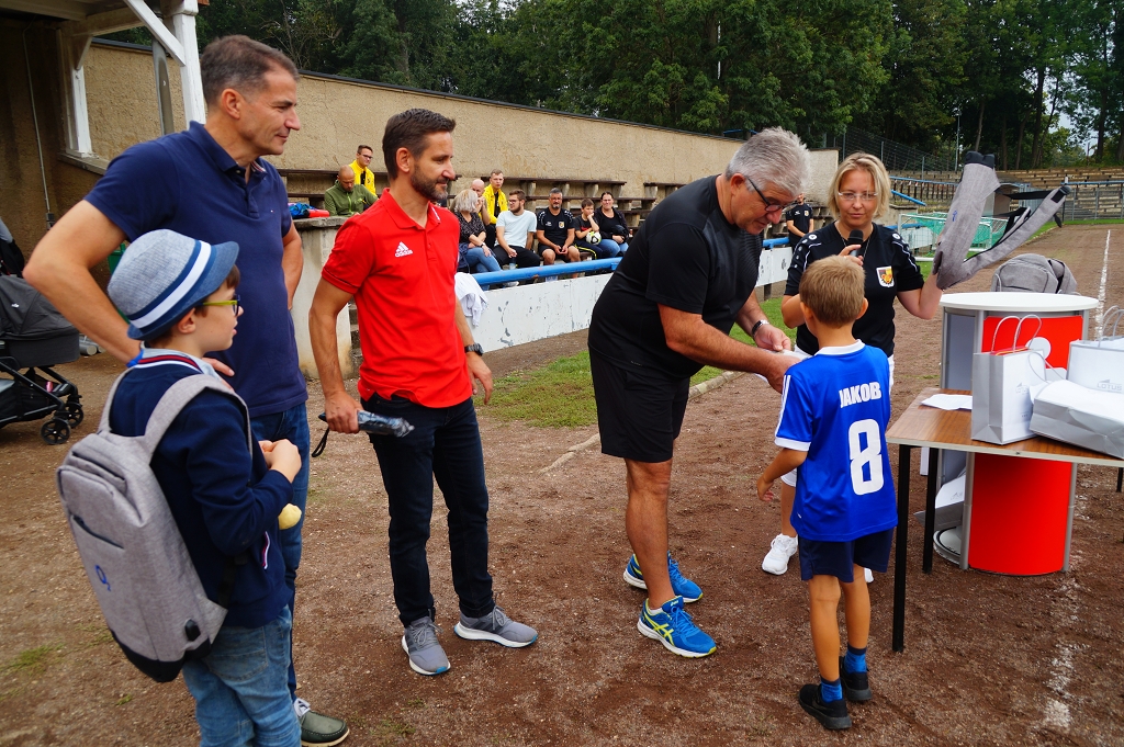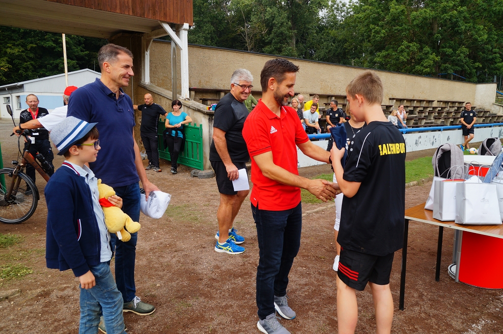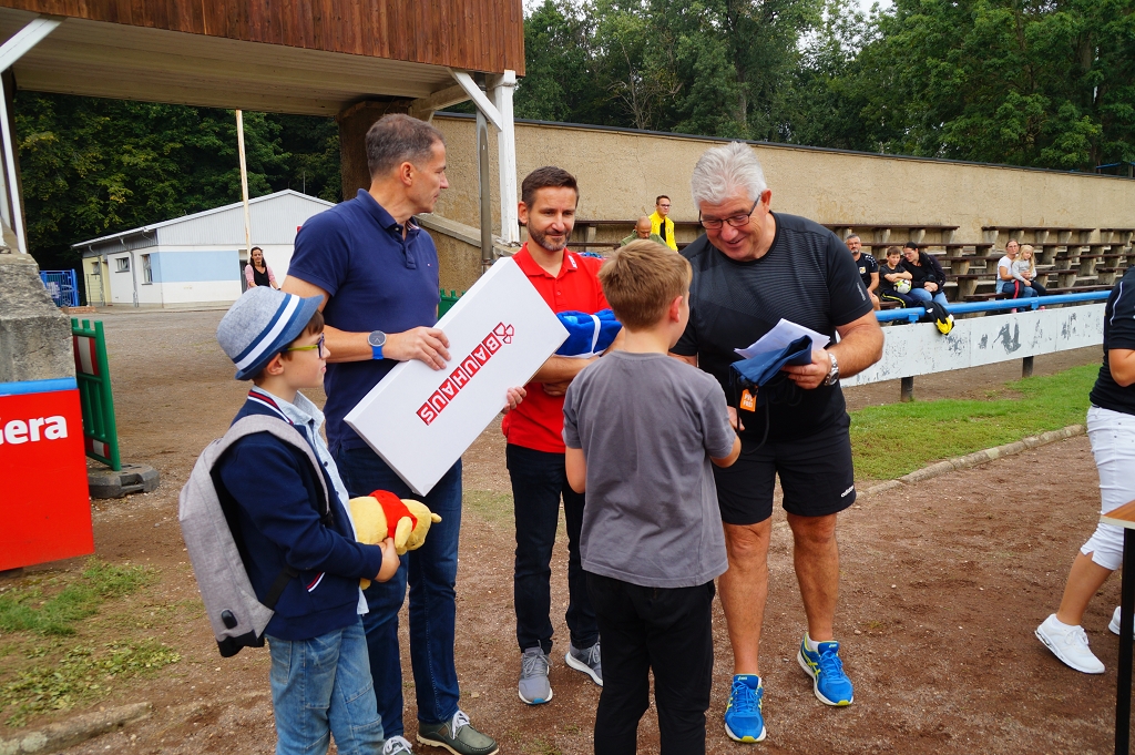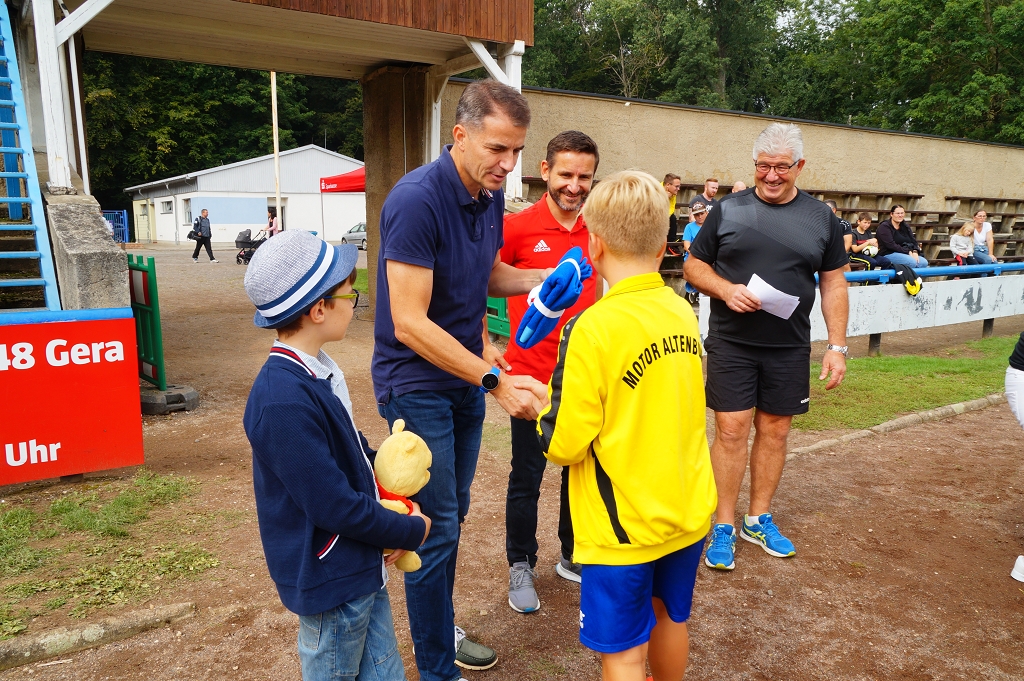 Dass die sportliche Anstrengung am Vormittag nicht nur Spaß gemacht hat sondern sich auch gelohnt hat, erfuhren die aktiven Kicker nach Beendigung des Stationsbetriebes zur Siegerehrung. Hier ließen es sich die Vertreter des Kreissportbundes Altenburg, Dr. Hendrik Baum und Ulf Schnerrer nicht nehmen und überreichten zusammen mit dem Motor-Präsidenten Frank Berlin und Katja Rieger den jeweils drei Bestplatzierten aller Mitmachstationen tolle Sachpreise (insgesamt 64 Preise in 4 Kategorien).