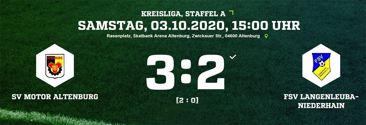 Sichtlich beflügelt von diesem Tor witterte Langenleuba seine Chance, denn Motor kam immer mehr ins Rudern. In der 55. Minute klärte Seidel vor der Linie in höchster Not, dann knallte ein Ball an die Latte. Der FSV drückte und schnürte die Altenburger weiter ein. Dann, nach einer Ecke in der 60. Minute, knallte M. Killemann den Ball zum 2:2 Ausgleich ins Netz und das hochverdient. Das Spiel drohte nun aus Motor-Sicht zu kippen, entwickelte sich aber zur Zitterpartie für beide Teams, denn auch der FSV musste weiter auf der Hut sein. Während die Gäste vehement nach vorn stürmten wurden sie auch anfällig und darauf lauerte Motor. Mit letzten Kräften bäumte sich der Gastgeber nochmal auf und sorgte mit genau so einem Überraschungsangriff für die erneute Führung. Die Gäste waren schockiert, standen sie dem Spielverlauf nach dem 3:2 doch näher als Motor. Und in dieser Phase wäre den Skatstädtern fast noch weiteres Tor gelungen. R. Kunze lief plötzlich allein auf den gegnerischen Torhüter zu und hatte die Wahl selbst zu vollstrecken oder den mitgelaufenen M. Gordziel zu bedienen. Er entschied sich für die zweite Variante weil sein Mitspieler günstiger stand. Der Torhüter war chancenlos, das Tor eigentlich nur noch Formsache, doch der Ball ging aus knapp sechs Metern daneben. Vier Minuten Krimizeit legte Schiri H. Grimmer noch oben drauf, dann der erlösende Schlusspfiff.