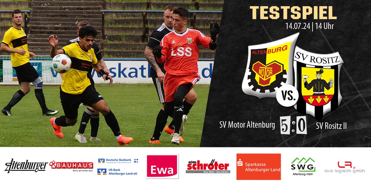 Coach Uwe Trautmann hatte einen perfekten Einstand und konnte sich über ein flottes Spiel seiner Mannschaft freuen, auch wenn am Anfang die Abschlüsse noch fehlten. Erst nach 22 Minuten gelang Rositz II eine nennenswerte Chance, als eine Flanke von rechts weder vom Motor-Keeper Möckel noch von seinem Gegenspieler erreicht wurde. Doch Altenburg konnte schnell kontern. Der Knoten platzte, als Mildner einen weiten Ball erlief und Seidel zur Führung verwandelte. Bis zur Pause bauten Seidel und Rother die Führung auf 4:0 aus. Rositz kam nur selten vor das Tor, aber wenn, dann wurde es gefährlich.